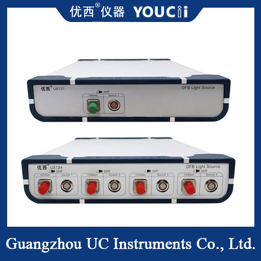 The U8134 4-channel LANWDM light source can be used in WDM CWDM devices, DWDM devices with high precision WDM, AWG optical waveguide grating array and other devices. Besides its high stability and fast speed, it is also small size and easy to use. Other devices with different wavelengths can also be customized so that different wavelengths can be measured at the same time.